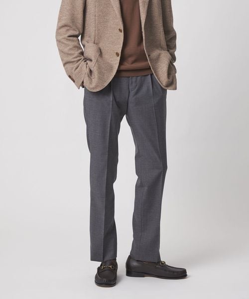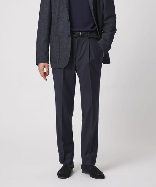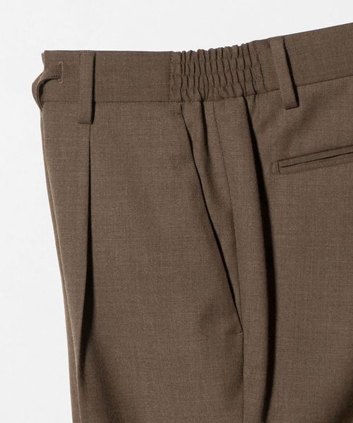 スリムテーパード サイドシャーリング 1プリーツ スラックス ストレッチ 防しわ