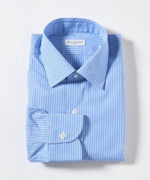 <Maria Santangelo>ブルーストライプ セミワイドカラーシャツ