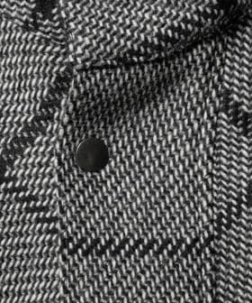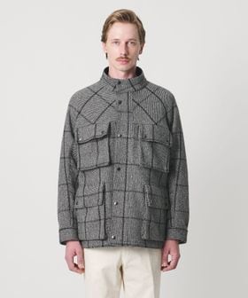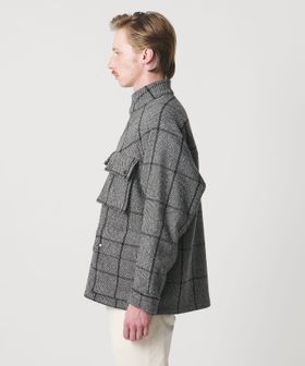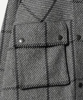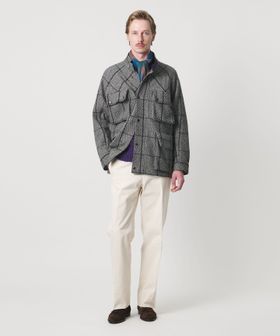 「KYNOCH」社製の白黒配色の杢糸を使ったクラシカルなウィンドウペン柄のツイード素材を使用。