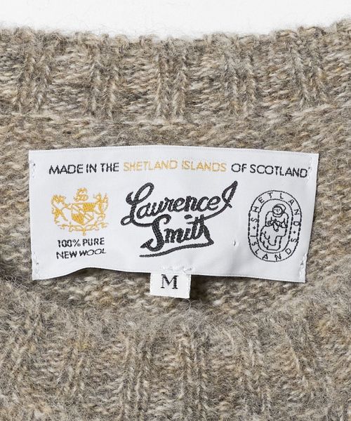1923年創業の創始者の名前を冠したLAURENCE J. SMITHは、スコットランドの北に位置する厳しい環境のシェットランド諸島で、熟練のニッター達が1930年代から使われている古い機械を用いて生産するなど、限られた数量しか作れない貴重で伝統的なセーターを手掛けているニットメーカーです。