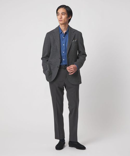 インナーにニットポロやカットソーを合わせたキレイ目カジュアルスタイルから、タイドアップのビジネスシーンまで幅広くお使いいただけます。