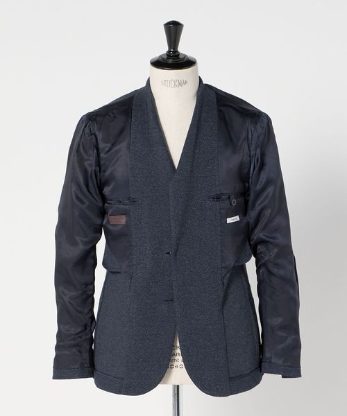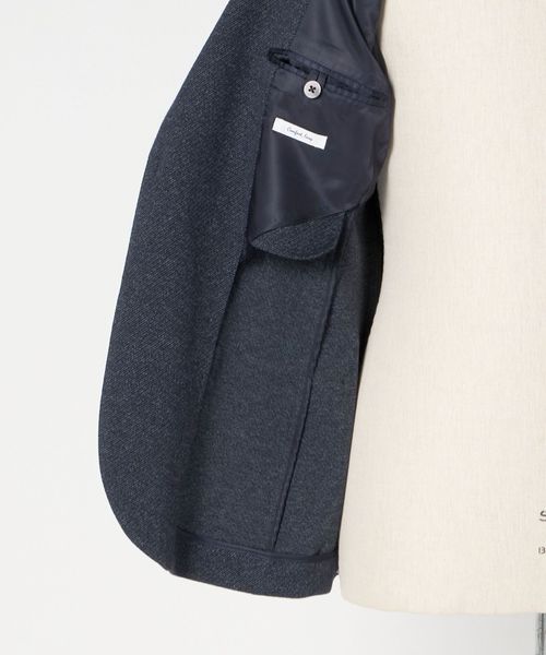 極力芯地を省き、軽い仕立てながらスーツのようにきちんと感を演出する普遍的なデザインバランスと、コンパクトですっきりとしたシルエット、ナチュラルなショルダーラインが特徴です。