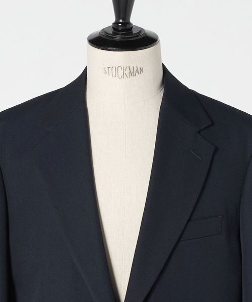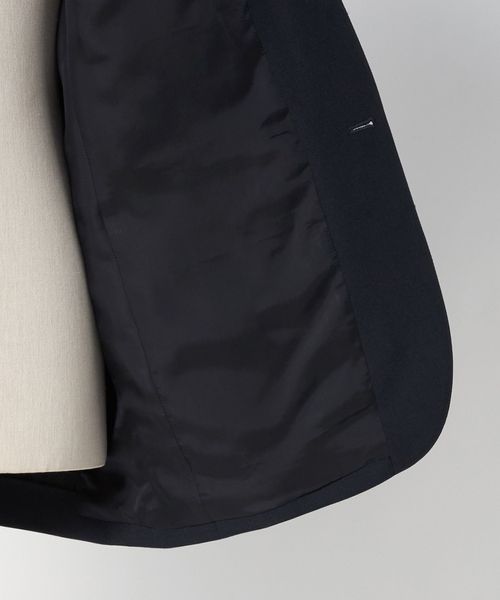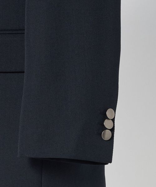 ベーシックなデザインの2ボタンネイビーブレザー。