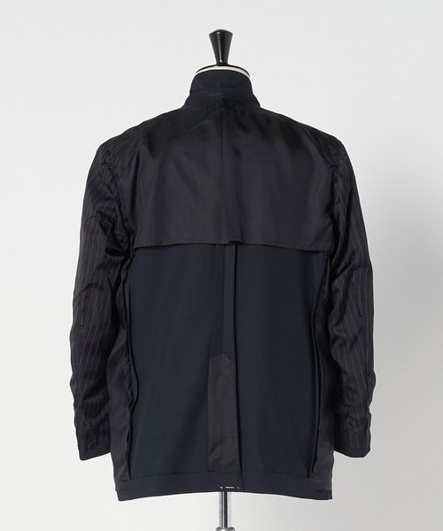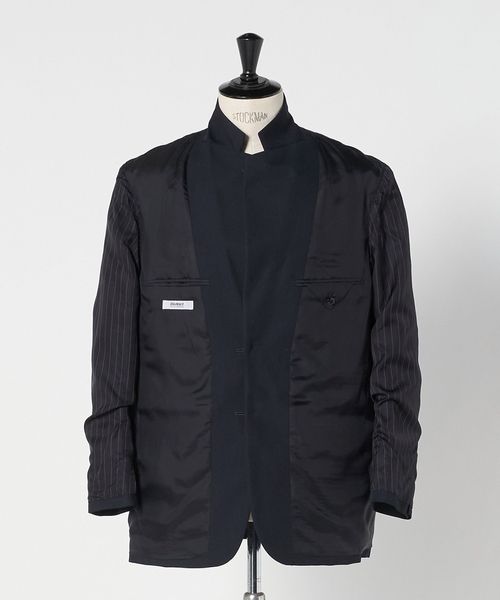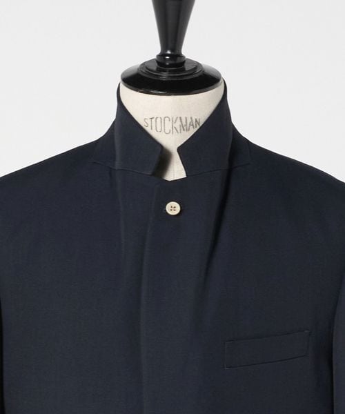 ラペルの裏側には釦を配置し、ラペルを立てて着用も可能です。