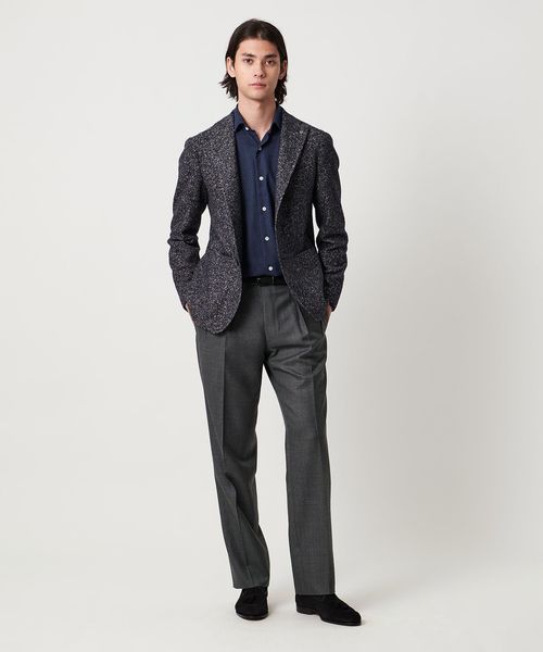 また、テキスタイルへの深い造詣を持ち、厳選した素材使いも特徴の一つです。クラシックをベースにしたスーツ、ジャケットのコレクションでカラーパレットを実現したような豊富な色柄、パターンのバリエーションを揃えたコレクションは稀有な存在です。糸からセレクトし作り上げたエクスクルーシブな生地にもブランドの拘りが伺えます。