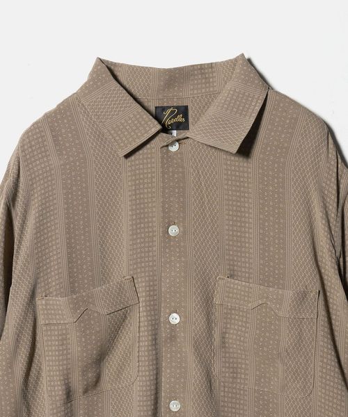 <NEEDLES>Open Collar Shirt Faulourd Stripe Jacquard/ストライプ オープンカラーシャツ