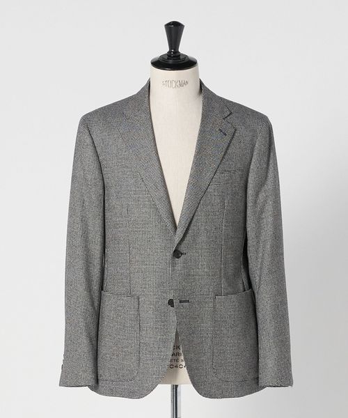 フランネル ハウンドトゥース シングル2ボタン テーラードジャケット COMFORT EASY‐MODEL ヨコストレッチ