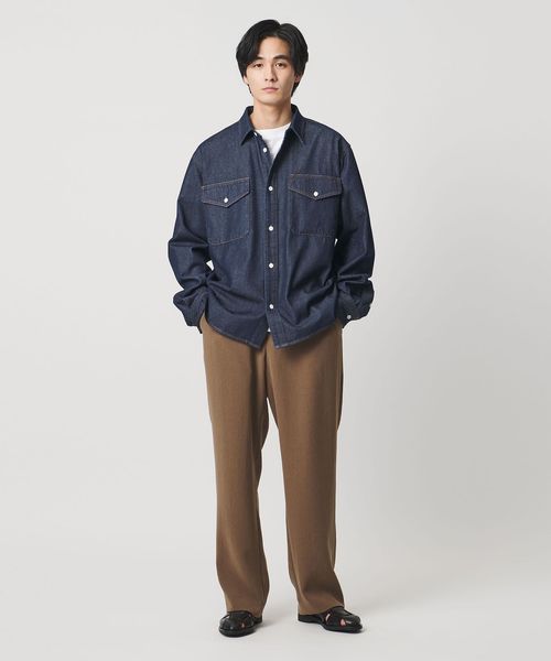 オールドのデニムシャツならではの抑えられたデザインがクリーンな印象で、スラックス、スカーフ等と組み合わせる上品なカジュアルスタイルともマッチします。