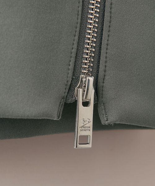身頃脇のファスナー引手やスピンドル先端にはオリジナルのメタルパーツを採用し、コラボロゴを刻印。さらに、袖口にはコラボロゴ入りのシリコンネームを付け、ディテールにもこだわりを感じられるデザインとなっています。