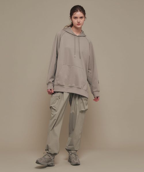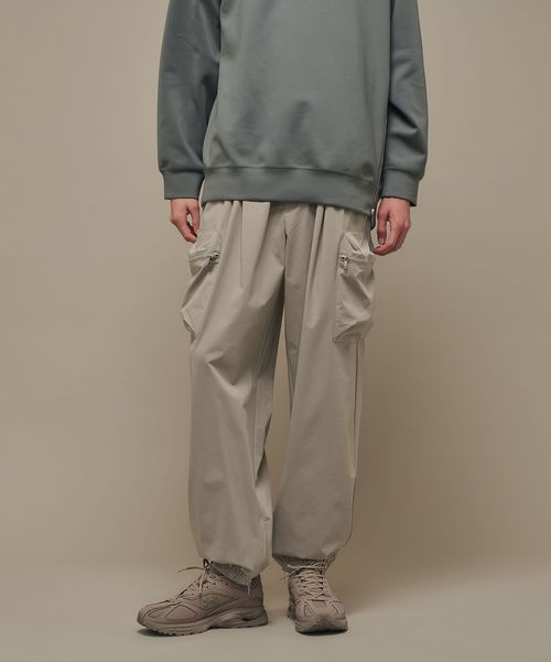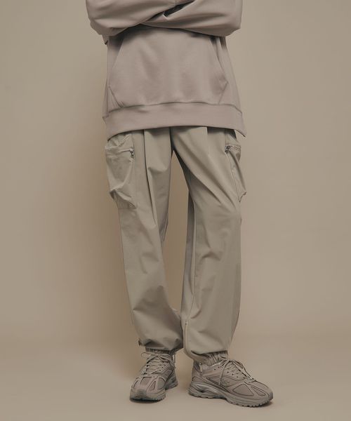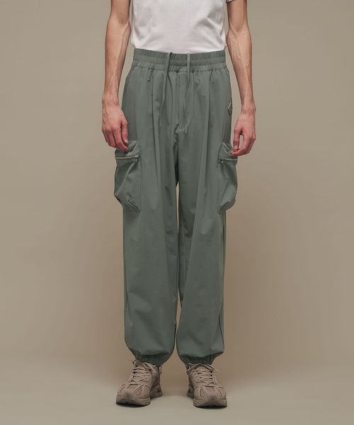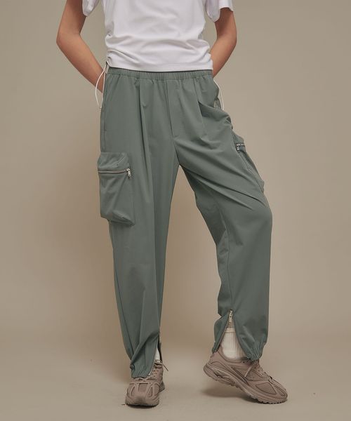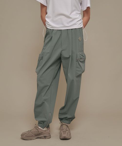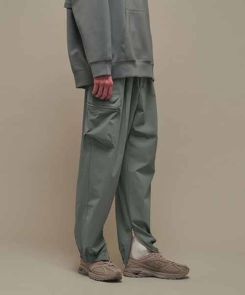 裾部分にはファスナーで開閉可能なエラスティックバンドを内蔵し、ジョガーパンツ仕様となっています。