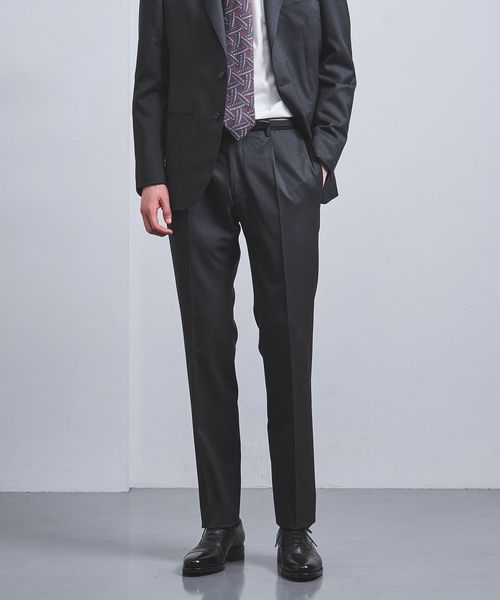 パンツはプリーツ量を深くし、腰回りに余裕をもたせることでジャケットとのバランスを取ったテーパードシルエットです。