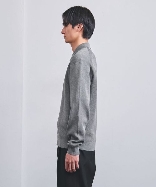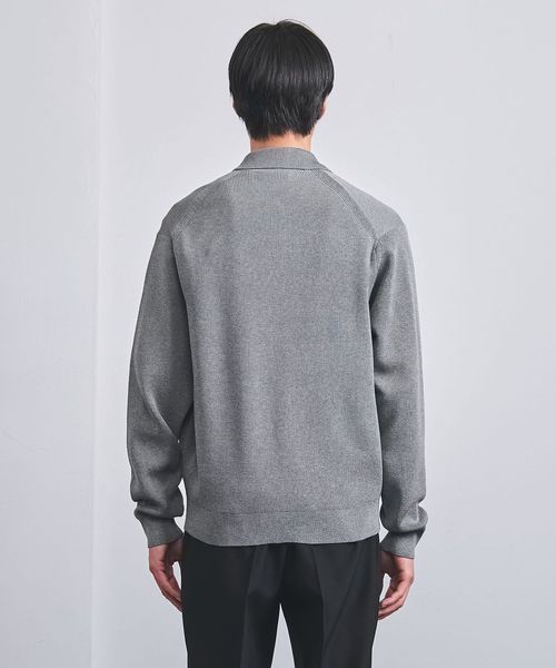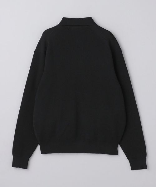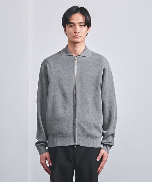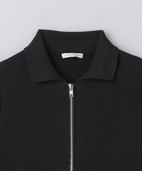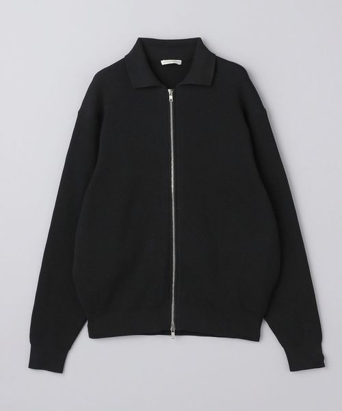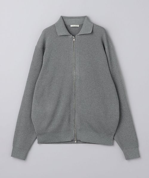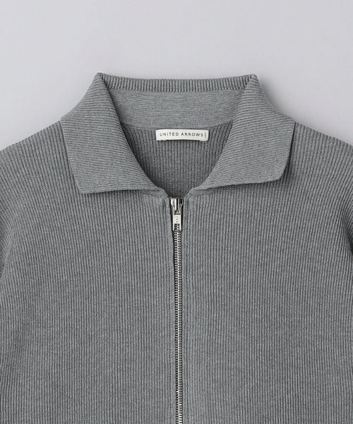 表面の表情豊かな畦編みのジップアップポロカーディガン。