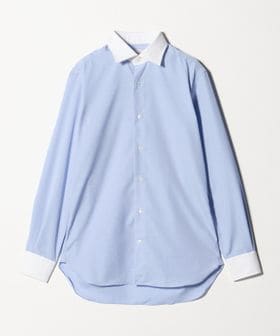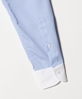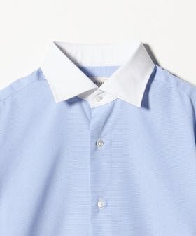 ベーシックなセミ・ワイドスプレッドカラーで、フォーマルな雰囲気も演出するクレリックカラー仕様。