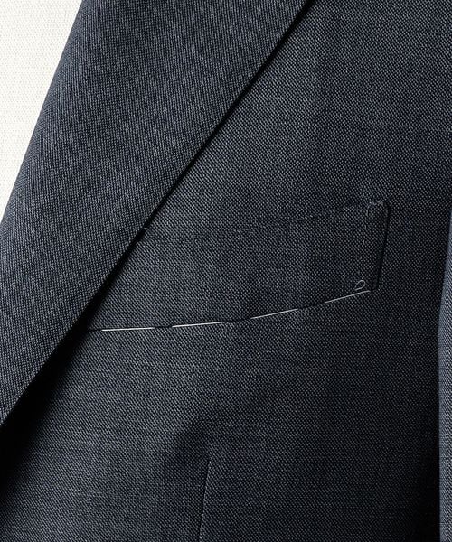 グレイッシュなブルーがさりげない変化を生む、上品なシャークスキン素材。