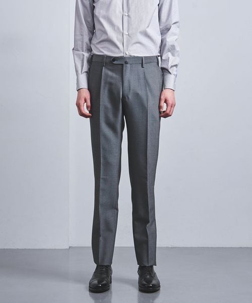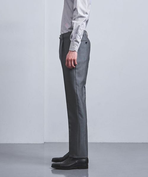 パンツはプリーツ量を深くし、腰回りに余裕をもたせることでテーラードジャケットとのバランスを取ったテーパードシルエットです。