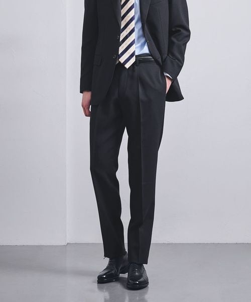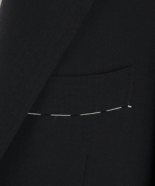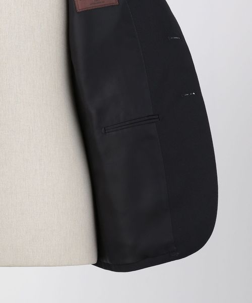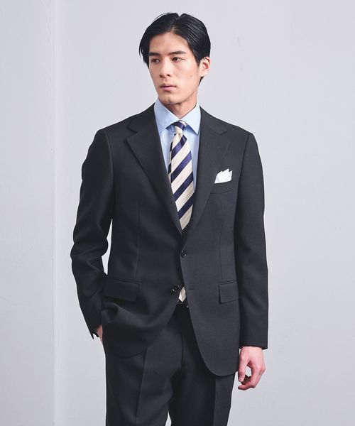 国内屈指の技術を誇る縫製工場で仕立てており、直線的なショルダーラインと男らしい胸まわりが特徴で、風格のあるスーツスタイルを演出いたします。