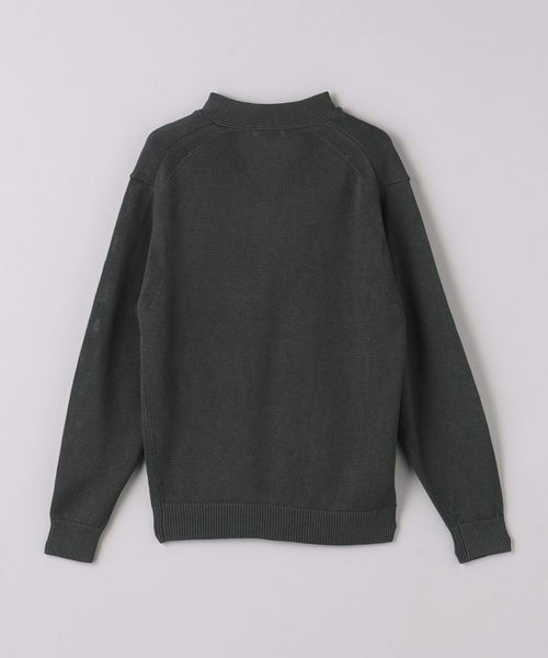 衿元は見た目のインパクトがある太目のリブ仕様で、Vネックの下部を重さねた小ワザの利いたディテールワークがデザインポイント。