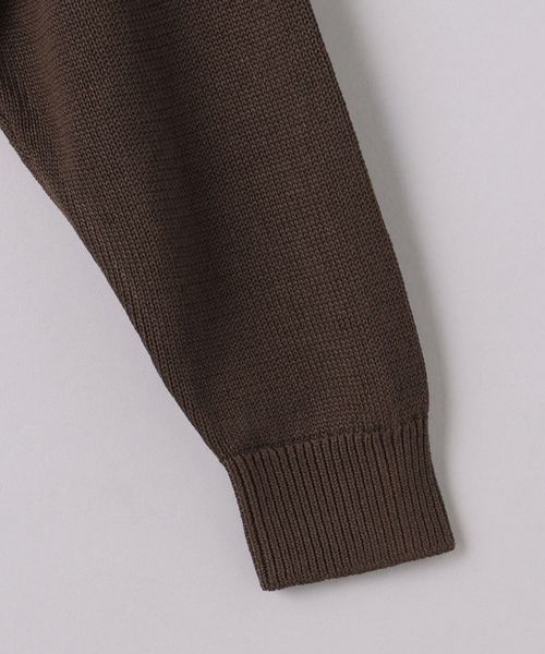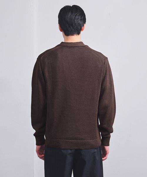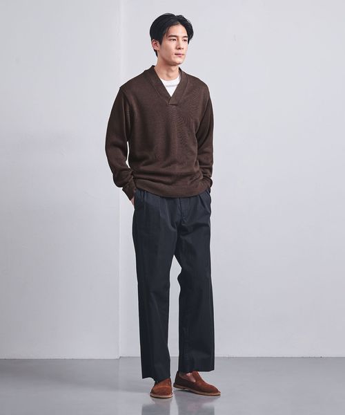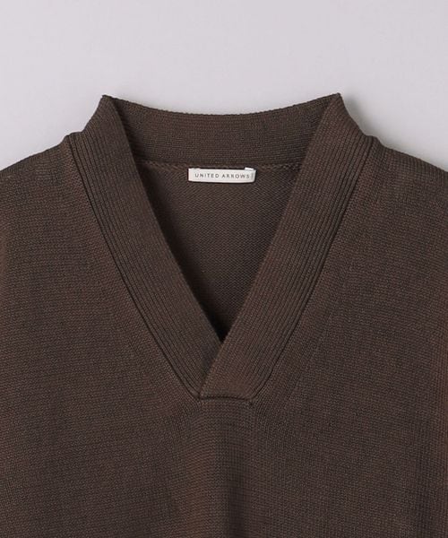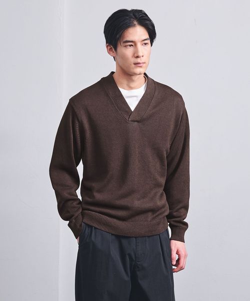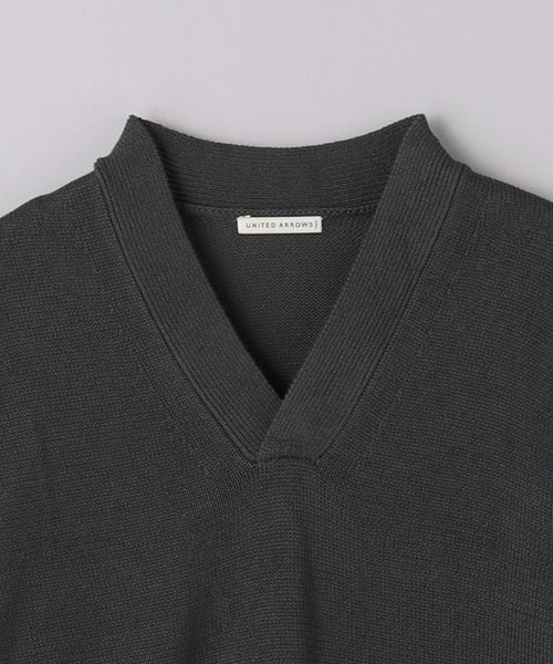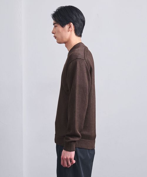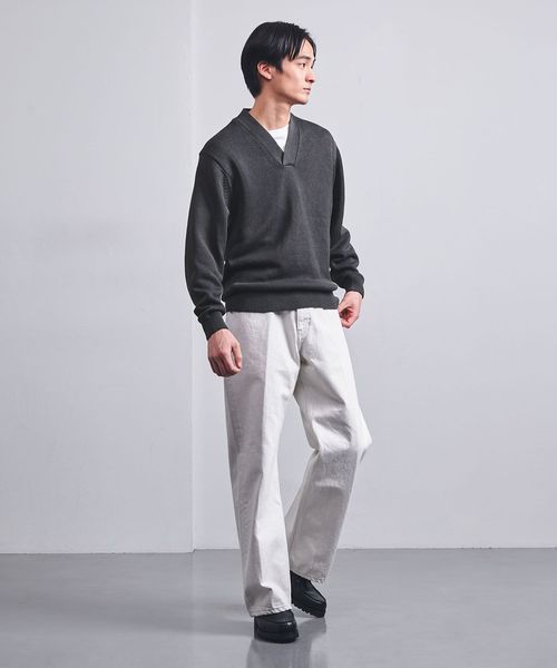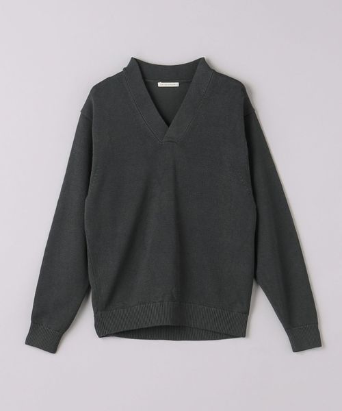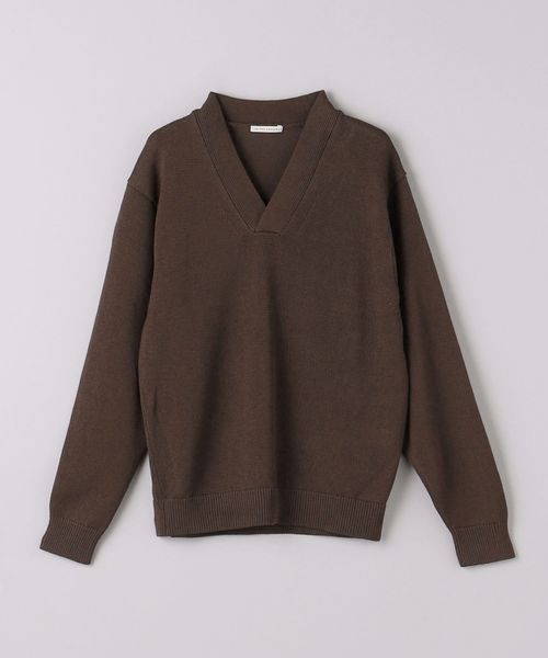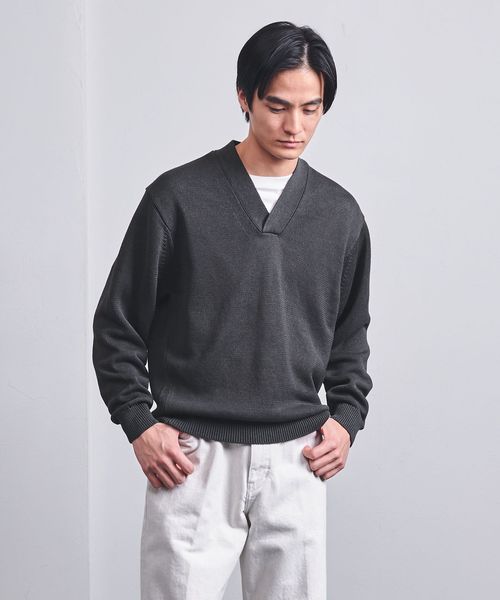 ローゲージのザックリとした編地とドライなタッチの素材感が特徴のVネックニット。