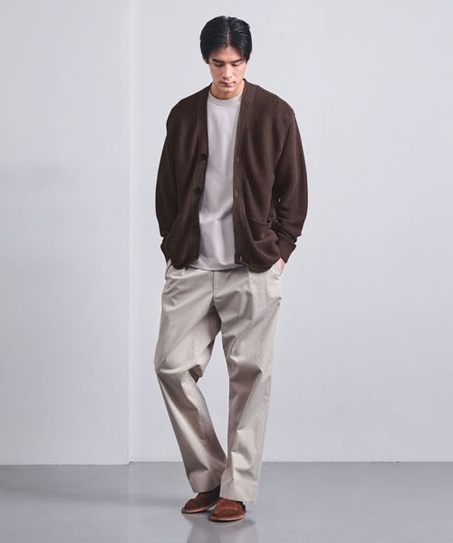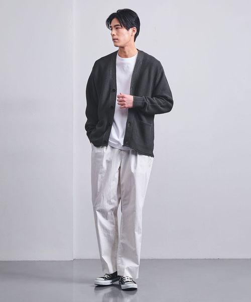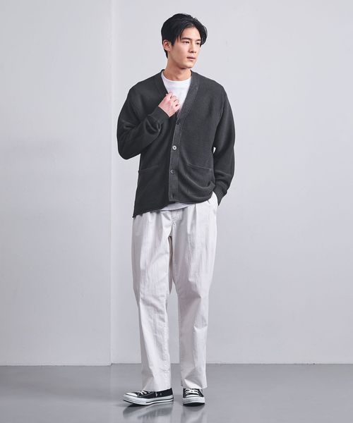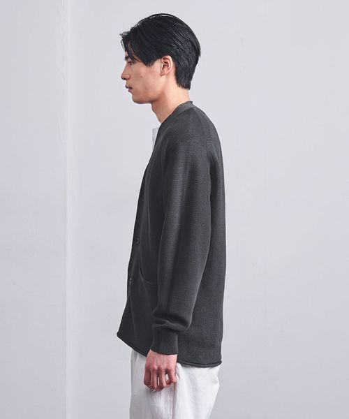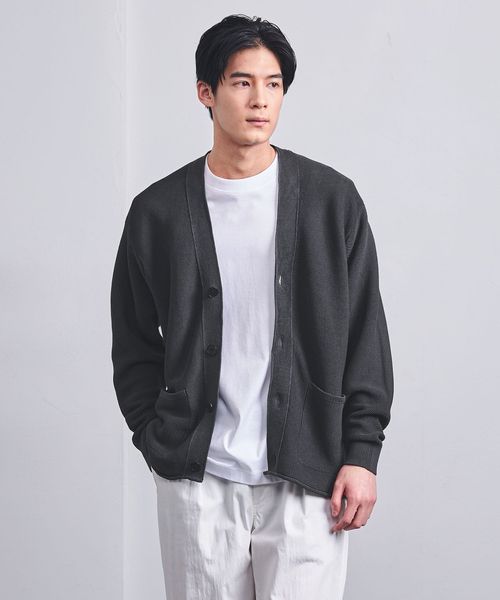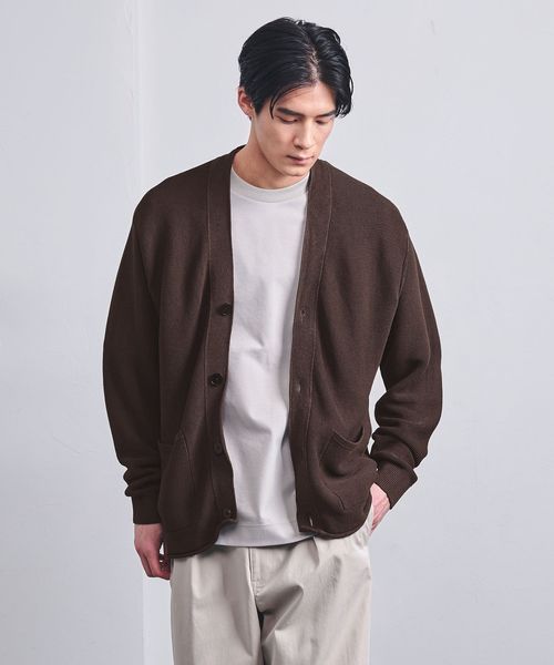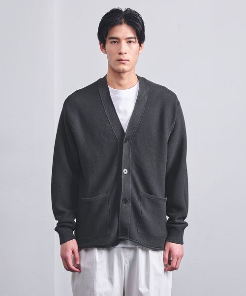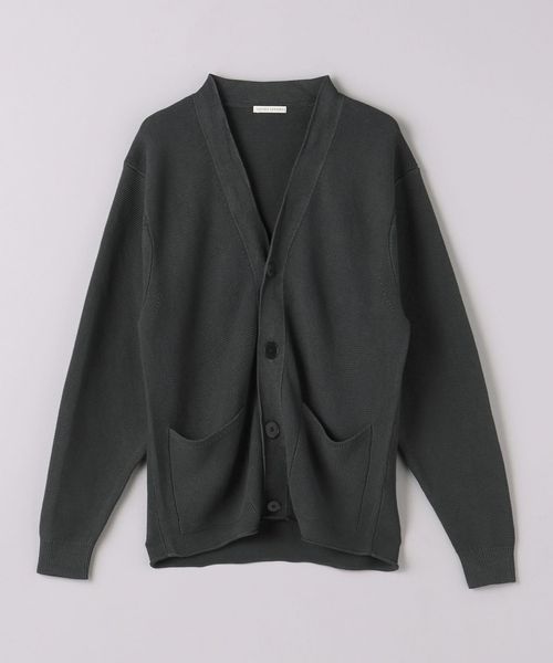 ローゲージのザックリとした編地とドライなタッチの素材感が特徴のVネックカーディガン。