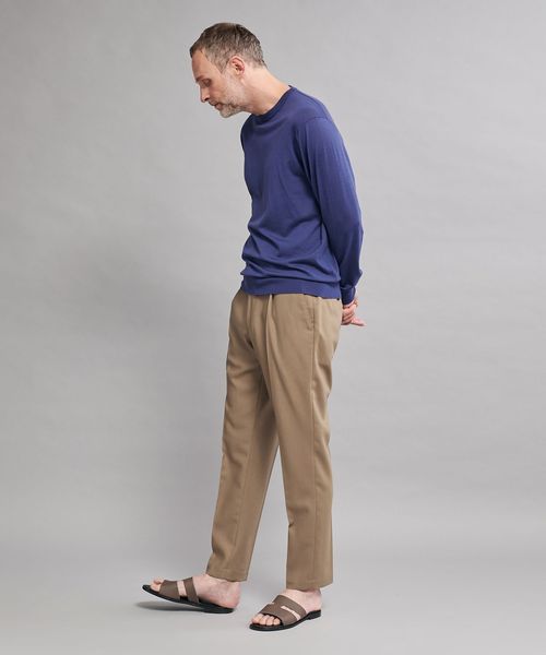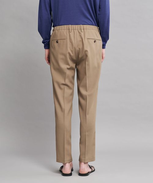 リラックスした腰回りから、裾にかけてすっきりとしたテーパードシルエットのイージースラックス。