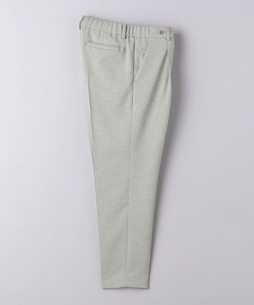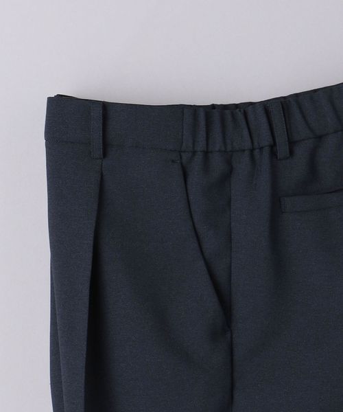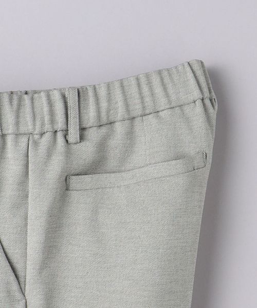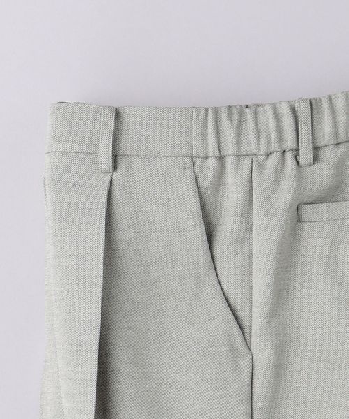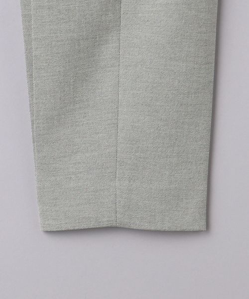 リネンライクなポリエステル生地を使用したパンツ。