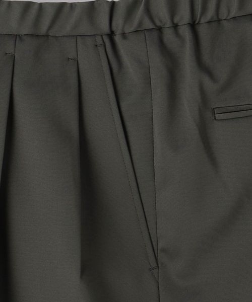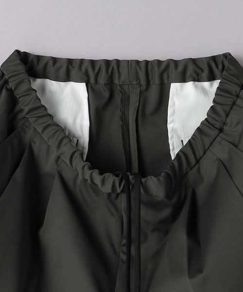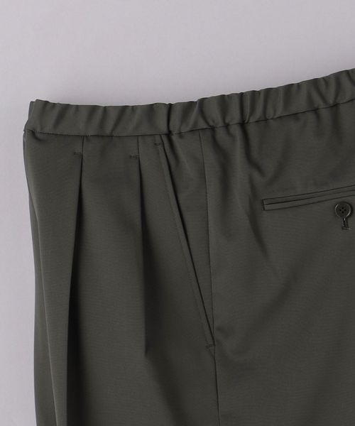 ウエストはオールギャザー仕様ながら、プリーツや両玉縁ポケットなど絶妙なバランスで仕上げています。