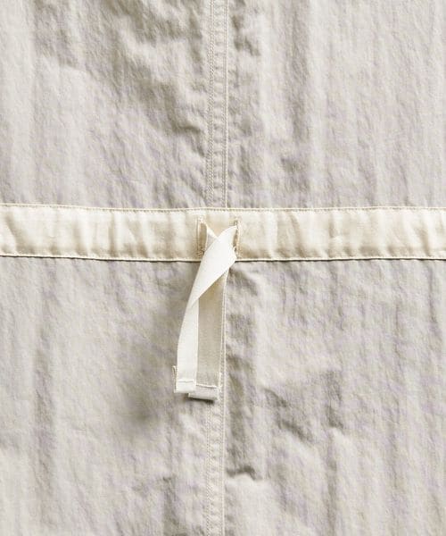 大きめの胸ポケットと、内側背面にウエストマーク可能なドローコードを配しています。