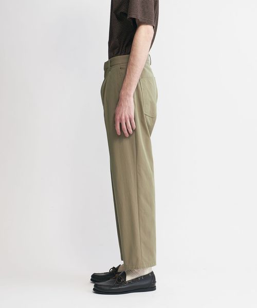 ヒップにゆとりを持たせて裾に向かって絞った1プリーツテーパードパンツ。
