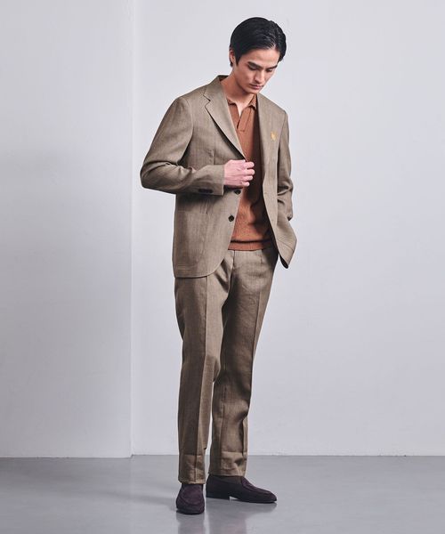 太番手ウールのふくらみを感じる風合いにリネンのカジュアル感を融合したヘリンボーン柄がリラックスした気分を与えてくれます。