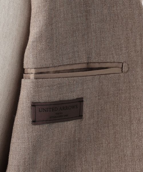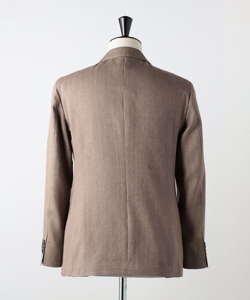 リラックス感のあるウールリネン素材を使用したヘリンボーン柄のジャケット。