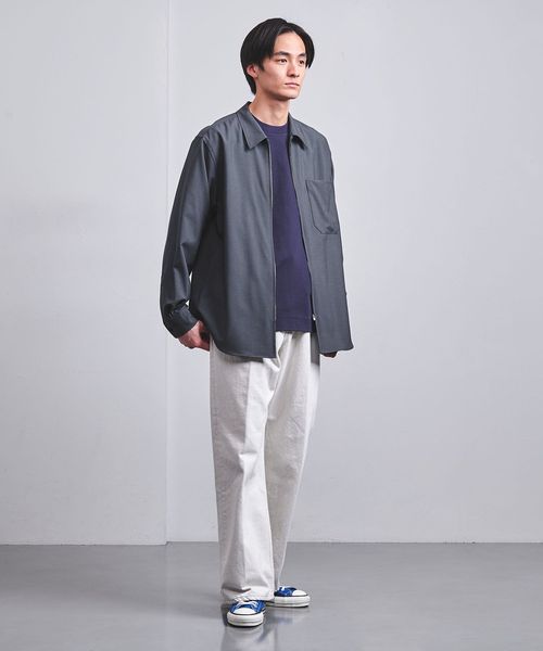 落ち感のあるドレープにゆったりとしたサイズ感が上品な大人カジュアルに最適なジップシャツ