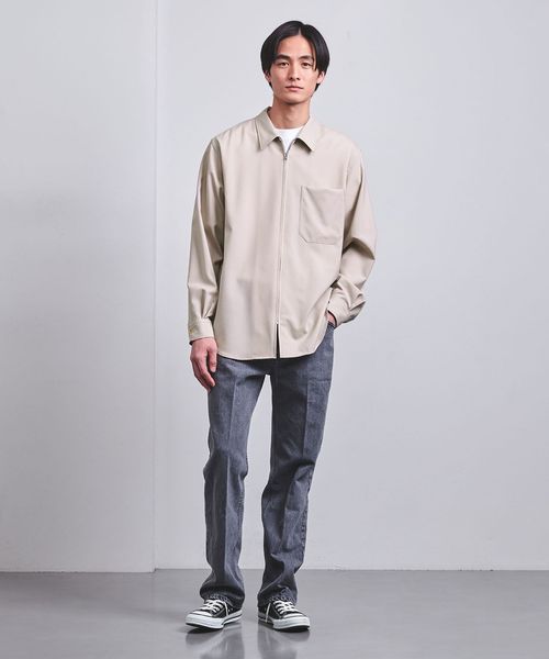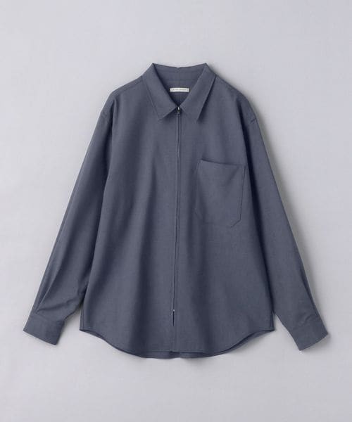 極細のフロントファスナーが洗練された雰囲気のジップレギュラーカラーシャツ。