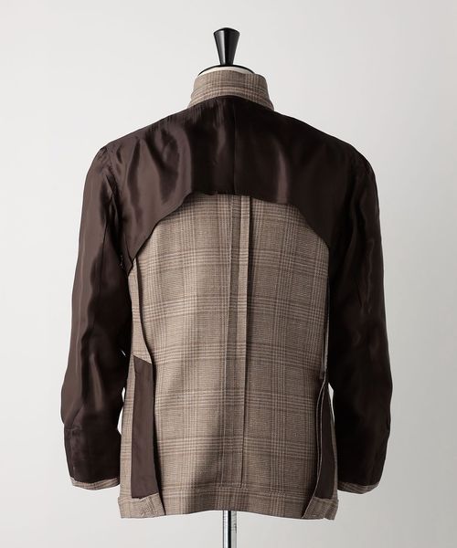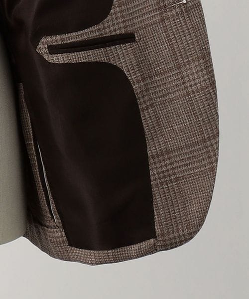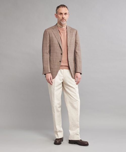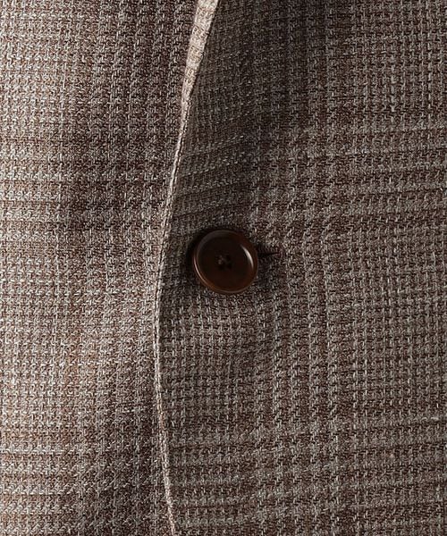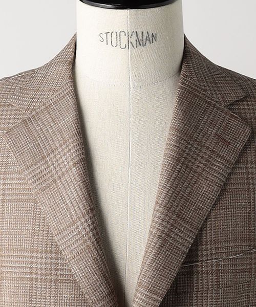 三者混(ウール、シルク、麻)生地の独特な風合いに上品なカラーリングとミックス感のあるチェックが特徴です。