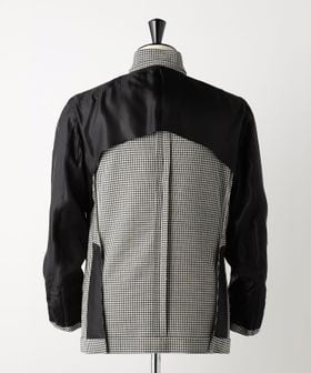 ホワイト×ブラックの配色でモダンな雰囲気のシェパードチェック柄3ボタンテーラードジャケット。