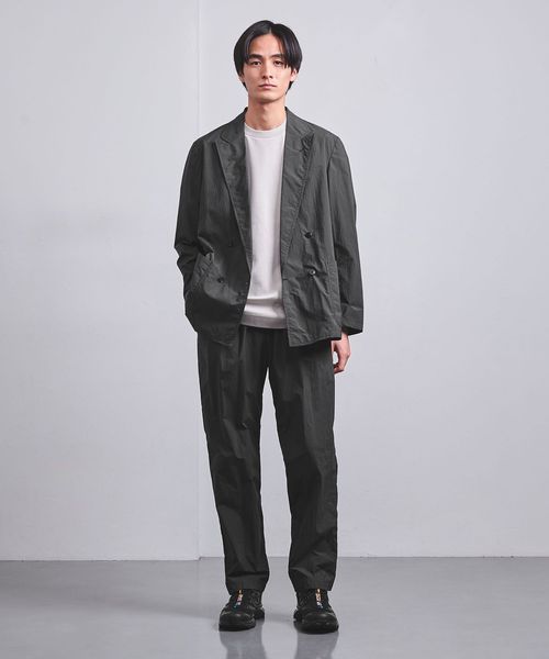 上品さとカジュアルさを兼ね備えているので、シンプルなTシャツや薄手のニットと合わせて肩肘張らないジャケットスタイルが楽しめます。同素材のイージーパンツと組み合わせてセットアップとしても着用が可能。