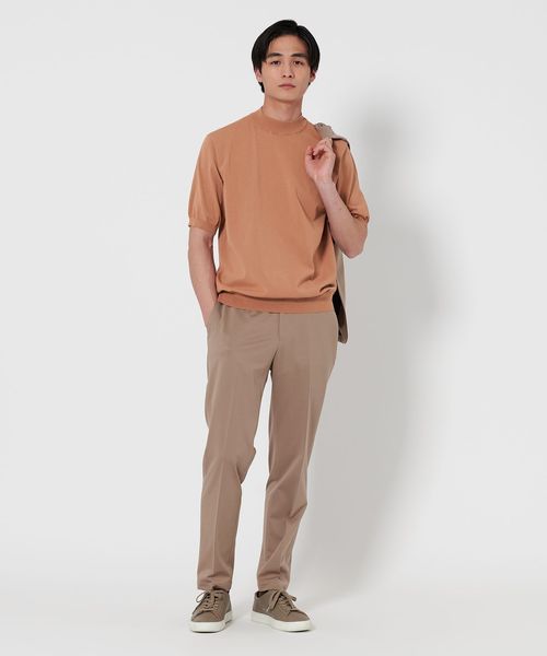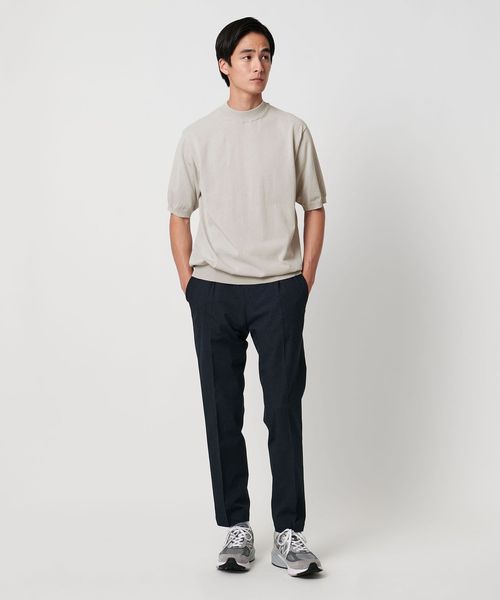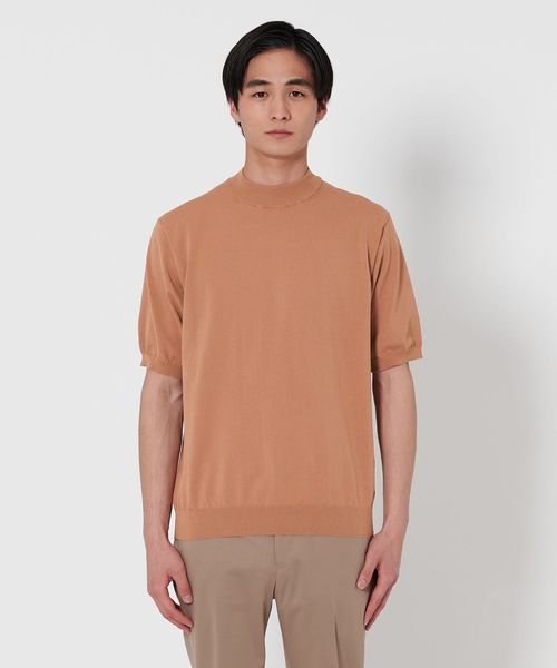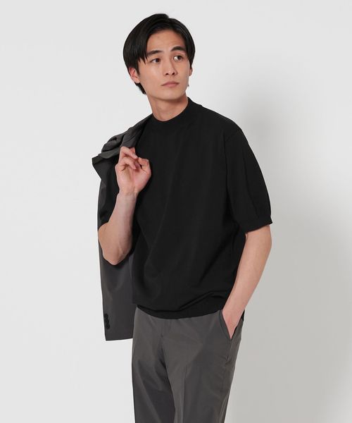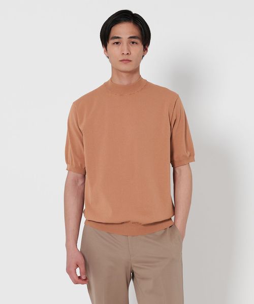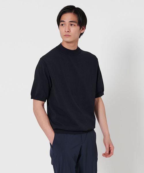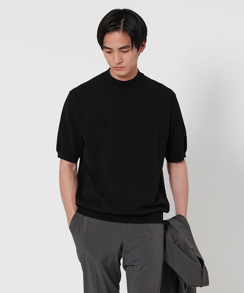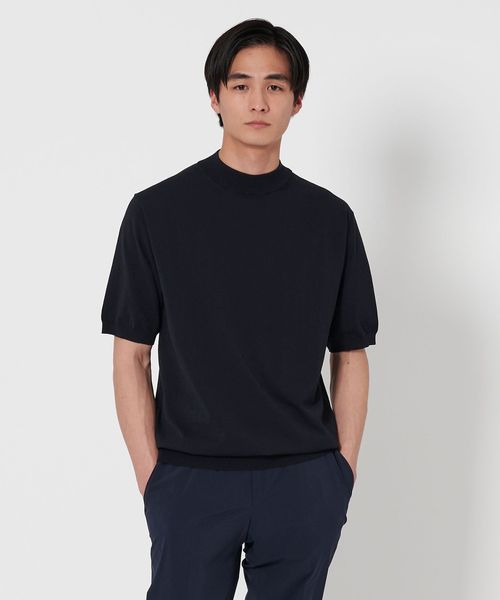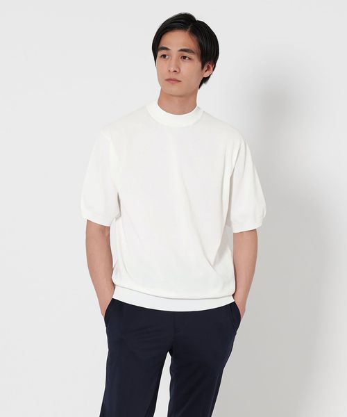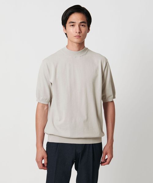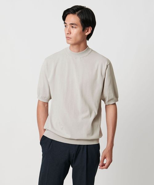 1枚着からインナー使用まで幅広い着こなしで活躍する半袖モックネックニット。