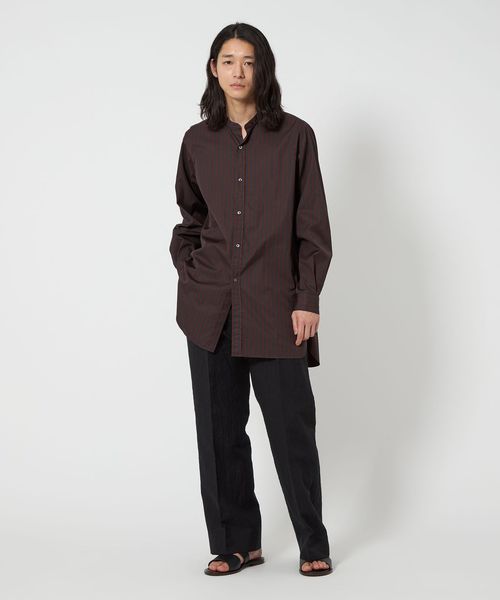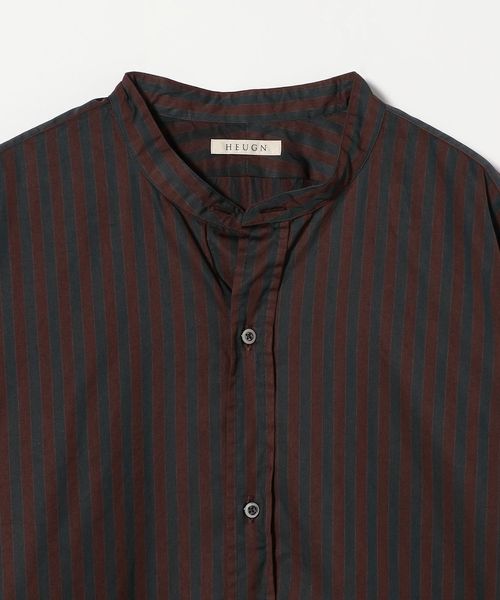 【別注】<HEUGN> ストライプ バンドカラー シャツ