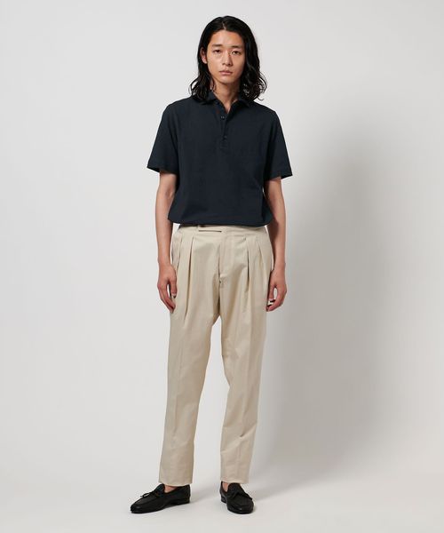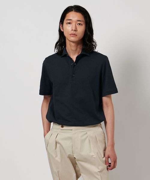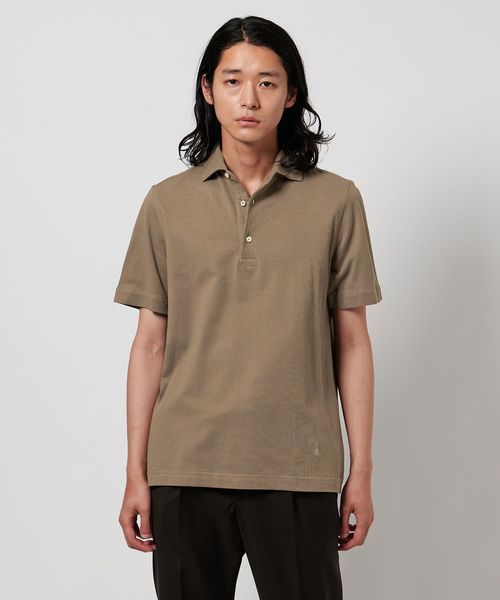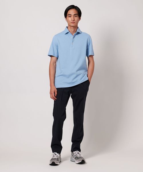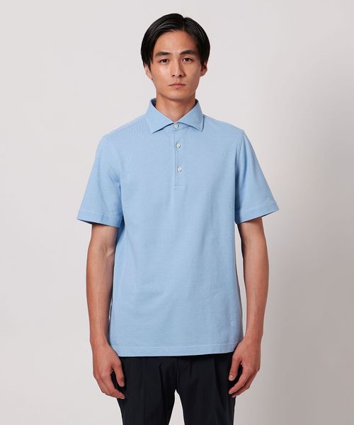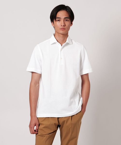 ビジネスシーンで着用されることが多い台襟付きワンピースカラーのポロシャツを、カジュアルな装いにもマッチするよう別注。
