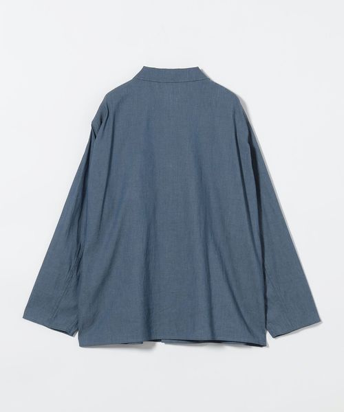 ボタンには、黒蝶貝にブリーチ加工を施した天然貝ボタンを使用。インディゴの色調と美しく調和し、全体の上品な佇まいを引き立てています。