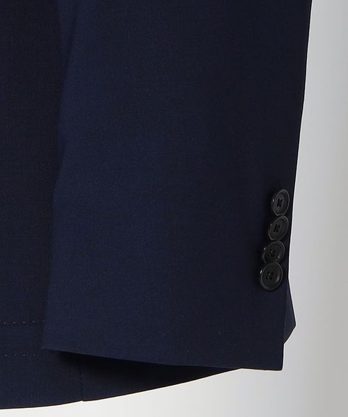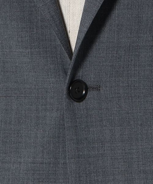 すっきりとしたシルエットでシャープな印象のシングル3ボタンジャケット。