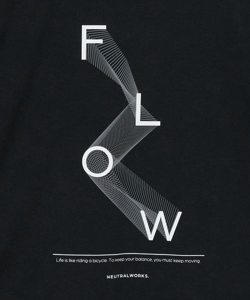 フロントの「FLOW」の文字は、フランス発祥の運動、パルクールの流れるような動作を示しており、「さあこれから動くぞ」というポジティブなメッセージを動きのあるデザインで表現しています。スポーツやアウトドアシーンに対応する機能性を持ちつつ、タウンユースにも適した1着です。