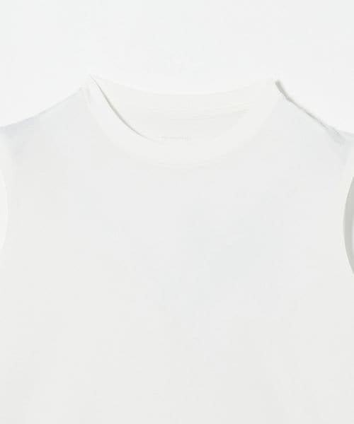 1枚で着用しても透け感の少ない、ソフトな肌触りの天竺素材のスリーブレスクルー。