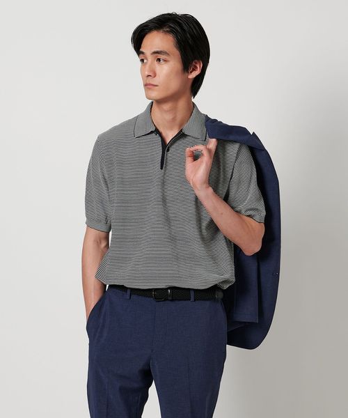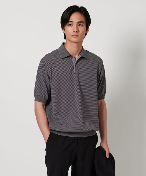 ショートスリーブ ボーダー ニットポロシャツ UA COZY ―ウォッシャブル・抗菌防臭―