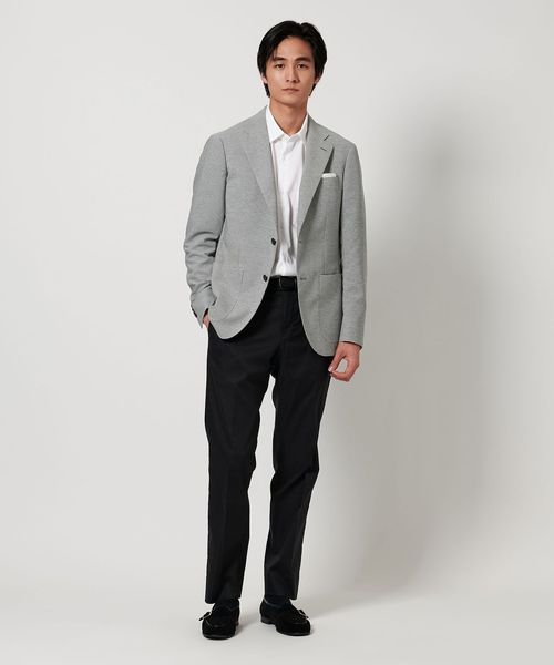 極力芯地を省き、軽い仕立てながらスーツのようにきちんと感を演出する普遍的なデザインバランスと、コンパクトですっきりとしたシルエット、ナチュラルなショルダーラインが特徴です。