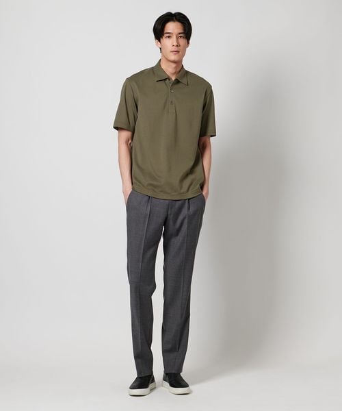 双糸使いにより、上品な艶と柔らかな風合いを実現し、上品な雰囲気のドレスポロシャツに仕上げています。
