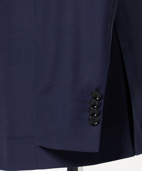 スタンダードなシングル3ボタンに、汎用性の高いノッチドラペル。