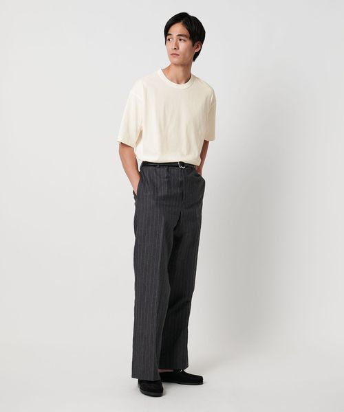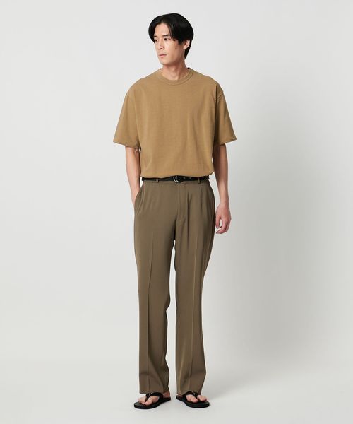 シンプルながらも素材の上質さが際立つため、あえてTシャツを主役にした着こなしがおすすめです。