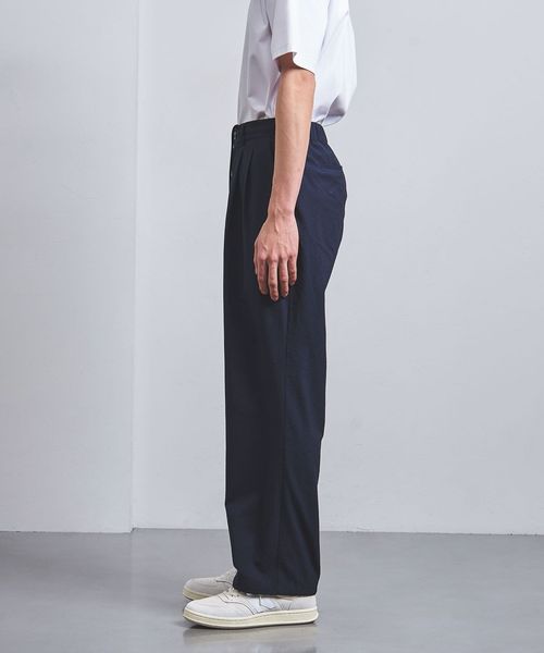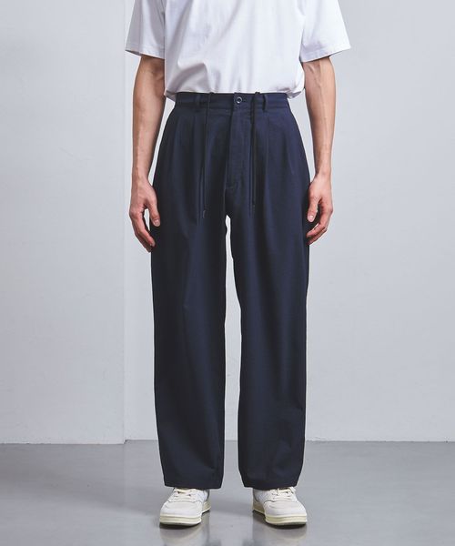 やや太めの2タックテーパードシルエットで、ウエストはバックギャザー(ゴム入り)仕様です。