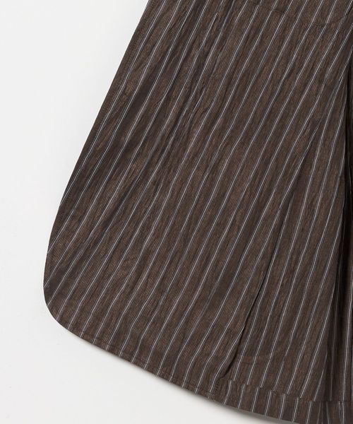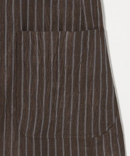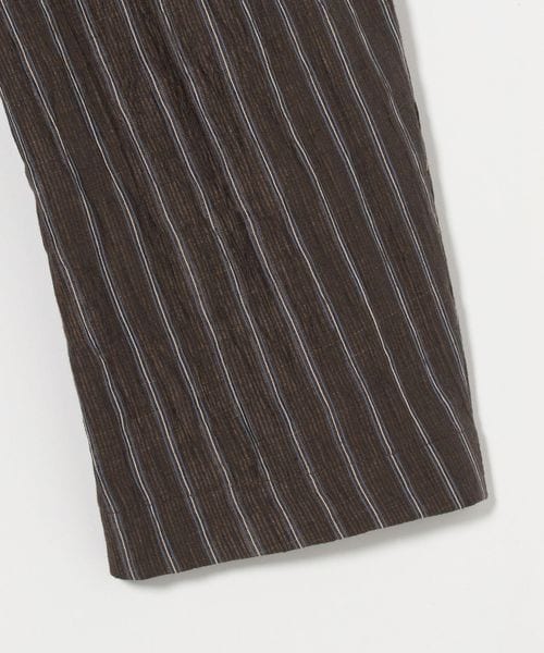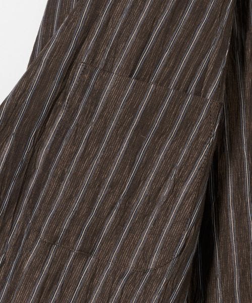 タテ糸にポリエステル糸、ヨコ糸にリネンと綿を配列した先染ストライプ素材。