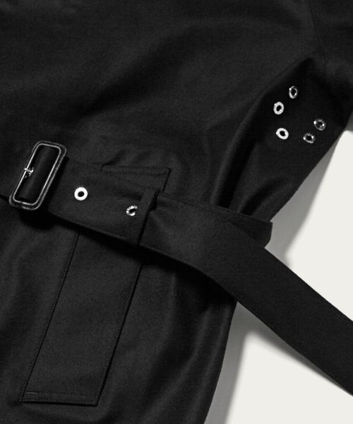 ラグランスリーブにアンブレラヨーク・ベルテッドデザインといったクラシカルな意匠をモダンなバランスにまとめたデザインです。